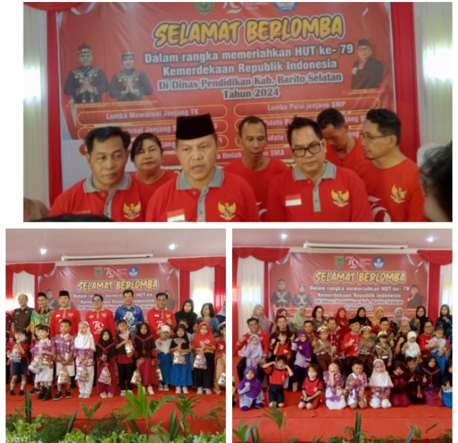 IKN Medianusantaranews.com -Buntok, Barito Selatan – Euforia kemerdekaan Republik Indonesia yang ke-79 menggelora di Kabupaten Barito Selatan dengan pelaksanaan serangkaian lomba yang diprakarsai oleh Dinas Pendidikan setempat. Acara ini digelar pada tanggal 15-16 Agustus 2024 dan dihadiri oleh Penjabat (Pj) Bupati Barito Selatan, Dr. Deddy Winarwan, S.STP., M.Si., bersama para pejabat Dinas Pendidikan, guru, siswa, serta peserta dari berbagai daerah.
