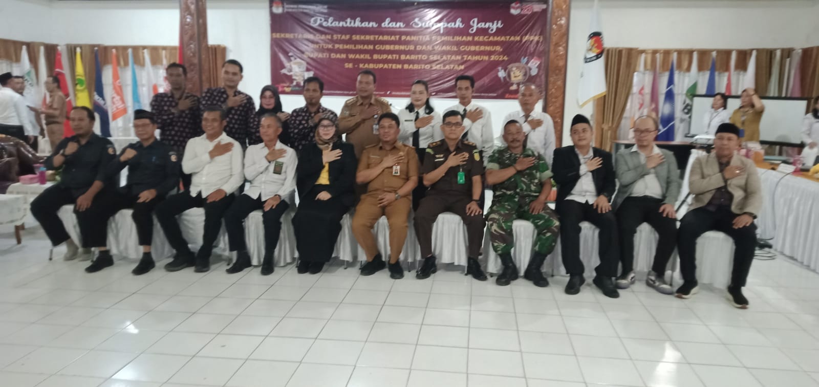 IKN medianusantaranews .com – Buntok Barito Selatan – Pada hari ini, di Aula Kantor Komisi Pemilihan Umum (KPU) Kabupaten Barito Selatan, telah dilaksanakan acara pelantikan dan sumpah janji bagi sekretaris dan staf sekretariat Panitia Pemilihan Kecamatan (PPK) dalam persiapan Pemilihan Gubernur dan Wakil Gubernur, Bupati dan Wakil Bupati Barito Selatan tahun 2024 di seluruh Kabupaten Barito Selatan.11/6/2024