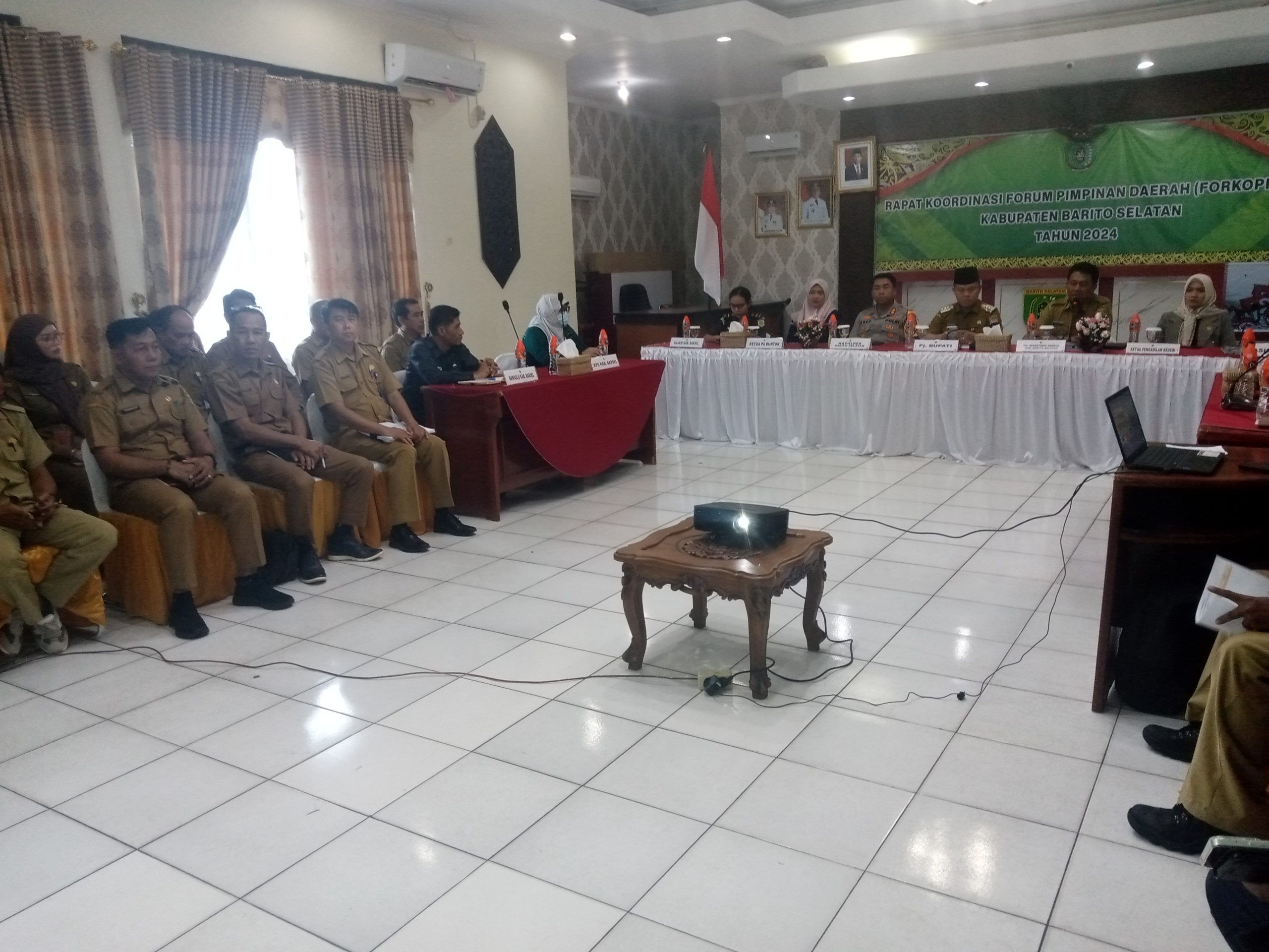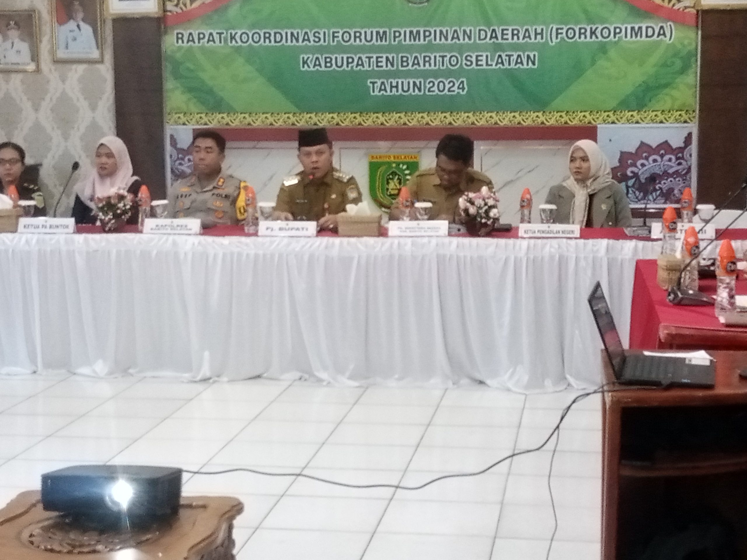 IKN medianusantaranews.com- buntok-(Barsel) Barito Selatan, telah dilaksanakan Rapat Koordinasi Forum Pimpinan Daerah (Forkopimda) Kabupaten Barito Selatan di Aula Setda. Rapat yang bertujuan untuk mengkoordinasikan berbagai kegiatan dan kebijakan di tingkat kabupaten Barito selatan dipimpin oleh Penjabat (PJ) Bupati, H. Deddy Winarwan, S.STP., M.Si.Pada hari Selasa,(20/02/ 2024).