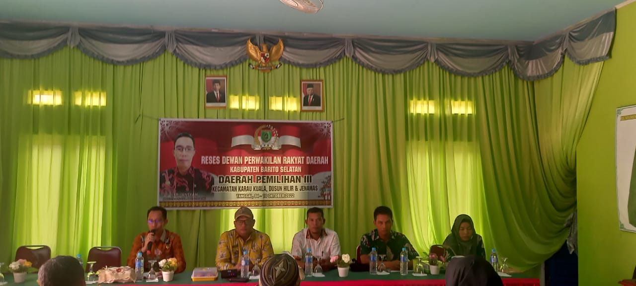 IKN,Media-nusantaranews.com|Buntok-Anggota DPRD Kabupaten Barito Selatan, Jarliansyah dari Fraksi PDIP melakukan Reses di sejumlah wilayah daerah pemilihannya, seperti di wilayah DAPIL III di Desa Janggi Kecamatan Karau Kuala Kabupaten Barito Selatan Dalam reses tersebut wakil rakyat itu mendapatkan aspirasi warga soal pembangunan Rehab SDN N 1 Janggi.